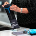 Smart handle provides a comfortable grip for cleaning and pivots into a drying stand for quick, hygienic drying