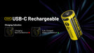 Nitecore's NL169R, the advanced 16340 Li-ion USB-C rechargeable battery. With a 46% capacity increase to 950mAh, it outperforms standard 16340 batteries. Equipped with a convenient light indicator for full charge notification, and featuring premium safety mechanisms, it safeguards against overcharging, over-discharging, and short circuits. Offering dual charging options and eco-friendly design, the NL169R is the dependable choice for powering your devices.