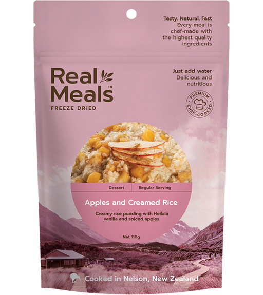 Real MealsDescription Creamy rice pudding with Heilala vanilla and spiced apples. Ingredients Rice, Sugar, Whole milk powder [Whole milk, skim milk, permeate...