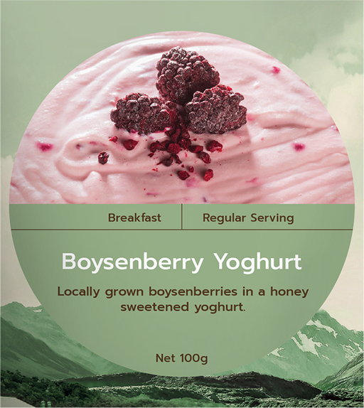 Real MealsDescription Locally grown boysenberries in a honey sweetened yoghurt. Ingredients Yoghurt [Pasteurised organic whole milk, live probiotic cultures]...